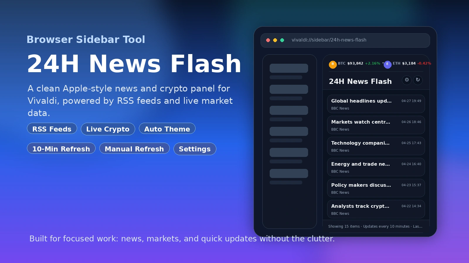 Browser Sidebar Tool: 24H News Flash